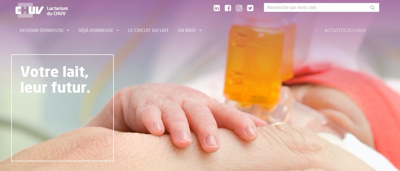 Nous avons la joie d’apprendre l’ouverture de la 9ème banque de lait en Suisse, au CHU de Lausanne, sous l’égide de Céline FISCHER FUMEAUX : https://www.chuv.ch/fr/